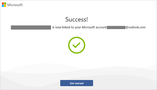 If you see the Confirm your settings, select Next. And the Success! opens to notify that your Office product is linked in your Microsoft account successfully. And then select Get started.