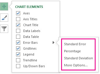 next to the chart, and then check the Error Bars box. (Clear the box to remove error bars.) -