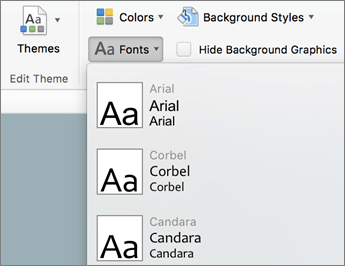 On the Slide Master tab, select Fonts, and then click the font that you want for the theme.