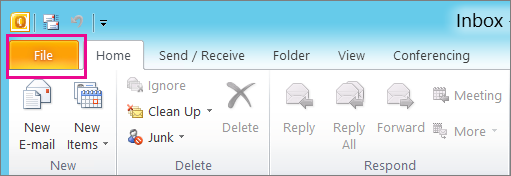 First, remove your email account from Outlook on your desktop. For example, if you have more than one account in Outlook 2010, you can right-click your selected account and choose Remove to remove it from Outlook. If it's the only account currently in Outlook, choose File > Account Settings > Account Settings > Remove.