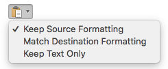 3. At the bottom of the pasted text you'll see a paste control icon. Click it to reveal your paste options