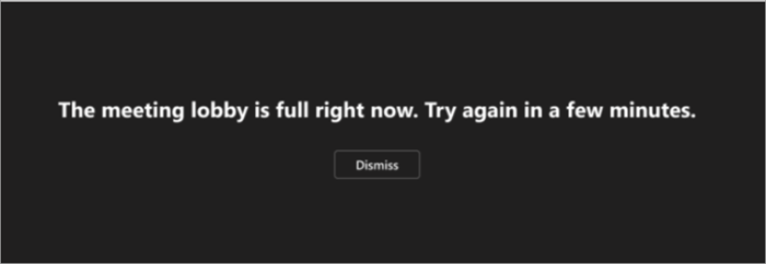 If the lobby is full, wait a few minutes before trying to join again. You may be able to enter if other attendees join the meeting or leave the lobby. For more on lobby settings, see Using the lobby in Teams meetings.