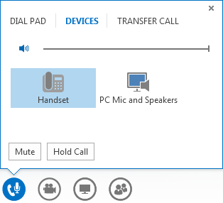 In the Lync Meeting, point to the Phone/Mic button