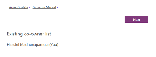 Add co-owner(s) by name or email address.