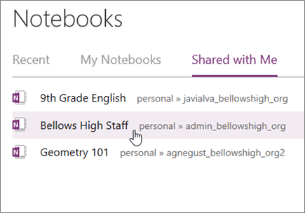 If the notebook has been shared with you, select Shared with me to view your Staff Notebooks.Â